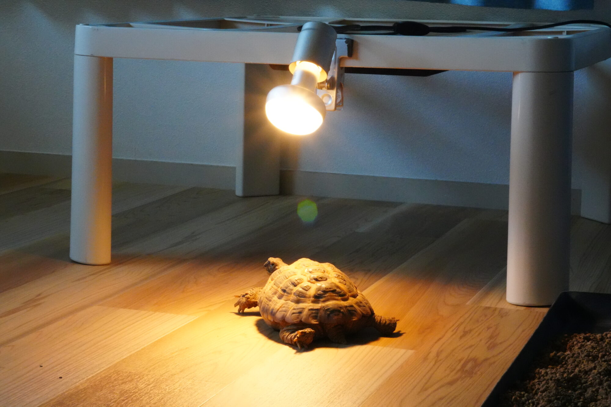 空間に温度勾配があると、リクガメが自ら移動して自分にとって快適な温度の場所に移動できるようになります。